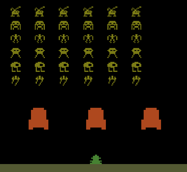 This was my attempt at recreating the game Space Invaders for the Atari 2600. All credits belong to their respective creators, this game is a mere study of their work.